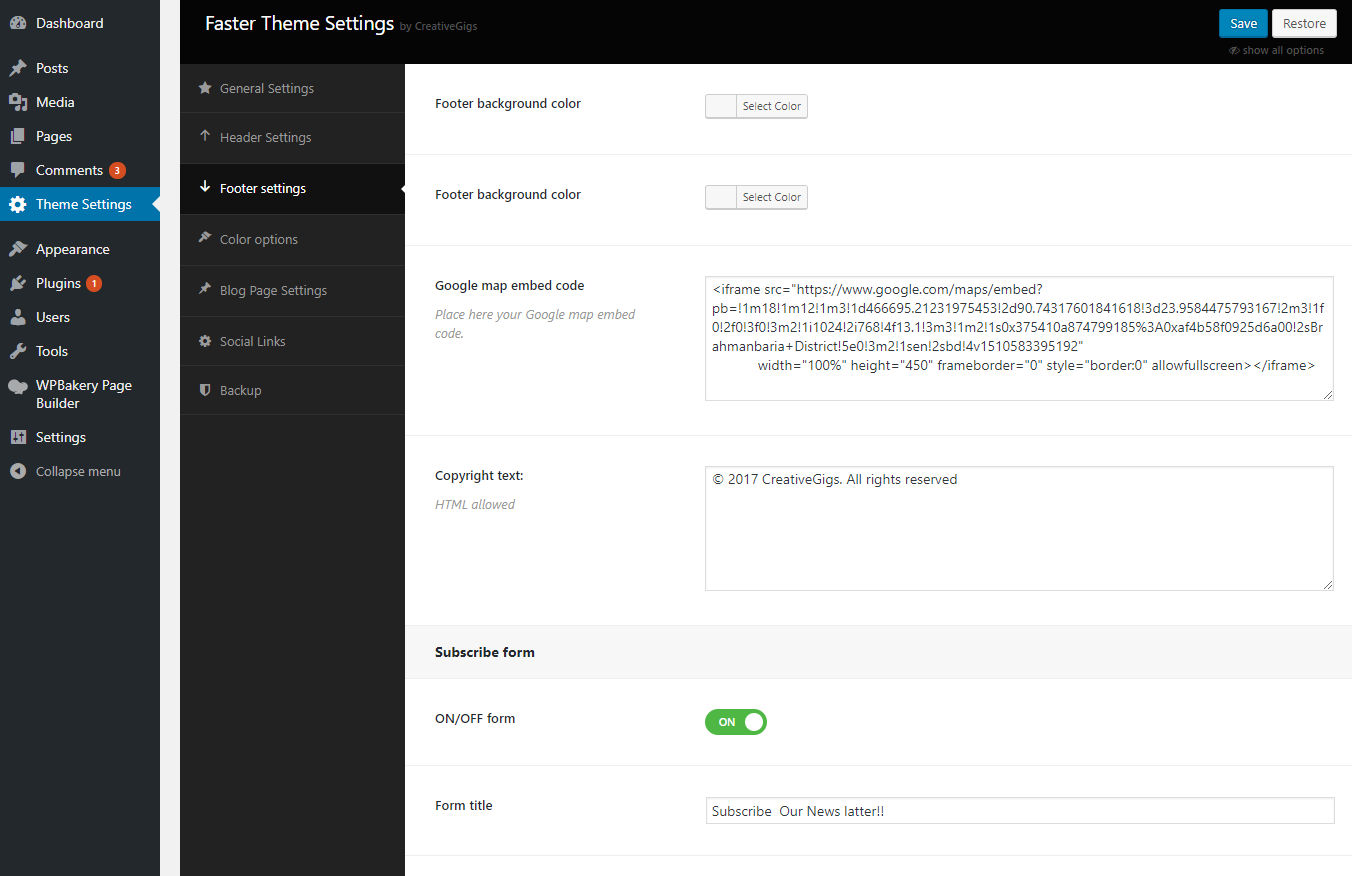 You can configure the footer area of the theme from this settings option. You will find all relevant section settings to the “Footer Settings” option. Navigate to Theme Options > Footer Settings to go to this settings section. We provided all necessary instructions and descriptions with all the options.